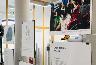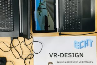 In der Hands-on-Ausstellung ECHT können die Besucher*innen VR ausprobieren, sich mit Chatbots unterhalten, erfahren Philosophisches und Interessantes darüber, wie Medien Realität abbilden und können jede Menge selbst gestalten: In 3D malen, VR-Brillen für das eigene Smartphone basteln, virtuelle Räume selbst gestalten u.v.m.